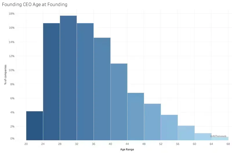 - 35세 이상 창업자도 50%를 차지하여 나이는 성공의 장애물이 아님